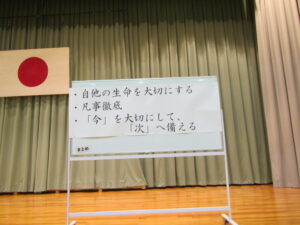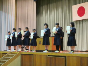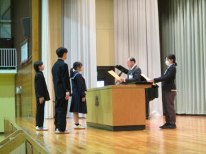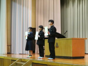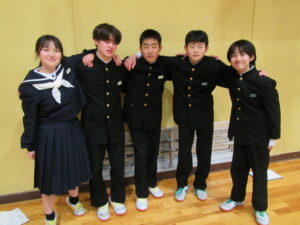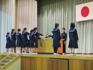 旧役員の皆さん、充実した生徒会活動、ありがとうございました。卒業までの間、1・2年生を見守ってください。そして、バトンを引き継いだ新役員の皆さん、公約に掲げたよりよい入善中学校になるよう、がんばってください。