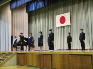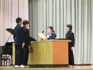 本日、1月8日(木)始業式の後に、令和8年度の生徒会役員任命式、新旧交代式、実行委員長委嘱式を行いました。