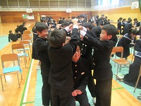 選択スポーツ終了後、昼食をとり、退所式を行いました。ディスクゴルフで優秀なスコアを出した生徒2名が表彰されました。