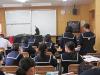 退所式後バスに乗り学校に向かいました。途中で、なぎさドライブウエイの景色を楽しみました。学校到着後、解散式を行いました。この2日間で充実した活動ができました。