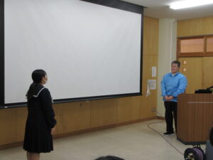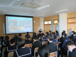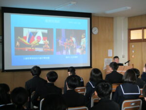 今日のできごと 【2学年】北方領土学習会 2026年1月14日 入善中学校情報担当 14日(水)5限に、2学年では北方領土学習会を実施しました。 千島歯舞諸島居住者連盟富山支部の皆様に来校いただき、北方領土の歴史や、元島民の思いについてお話をうかがいました。 生徒の感想には、 「この時間を通して歴史や伝統を知ることができた。」 「これを機にもっと自分でも調べて、北方領土について知りたいと思った。」 という声がありました。 貴重なお話を聞かせていただき、ありがとうございました。