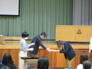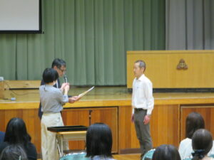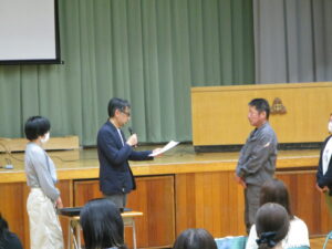 今日のできごと 令和8年度創立記念式を行いました 2026年4月17日 入善中学校情報担当 本日、4月17日(金)1限に、令和8年度 創立記念式を行いました。 今年度は講師に、(株)入善環境センター代表取締役会長 藤井 原 様をお迎えし、これからの人生において大切なことを二つ教えていただきました。1つ目は人との出会い。2つ目は、辛いことも前向きに捉えていくこと(ポジティブシンキング)だと、ご自身の体験や職場での実践を織り交ぜながら、分かりやすくお話しいただきました。藤井様、ありがとうございました。