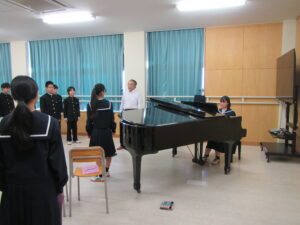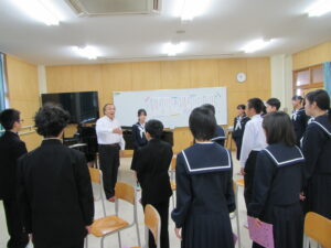 今日のできごと 合唱指導に宮﨑新悟先生が来校くださっています 2025年10月30日 入善中学校情報担当 今年も、合唱指導のために宮﨑新悟先生が来校してくださっています。指導は、今日と明日の二日間です。 どのクラスも今日まで頑張って音取りを行い、各パートを合わせることができるようになった曲に、宮﨑先生は的確に表情を付けていってくださいます。生徒と一緒に歌いながらのご指導。ありがとうございます。 11月13日の合唱コンクールに向けて、歌を磨いていきます。皆さん、入中生の歌声にご期待ください。